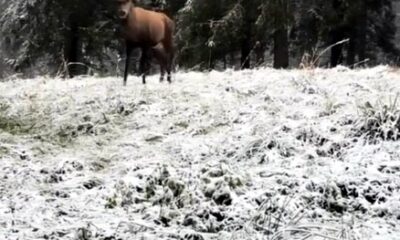 Yüzde 65i ormanlarla kaplı Boluda doğa gezisine çıkan Sefa Eskioğlu, karlar içinde ilerleyen bir kızılgeyiği fark etti. Eskioğlu, o anları cep telefonuyla kaydetti. Karla kaplı ağaçların...