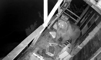 İki gün üst üste balkona tırmanan ayı kovanları parçalayıp, balları yedi; o anlar kamerada TRABZON’un Of ilçesinde yamaç arazideki taş ahşap karışımı evin 2’nci katındaki balkona...