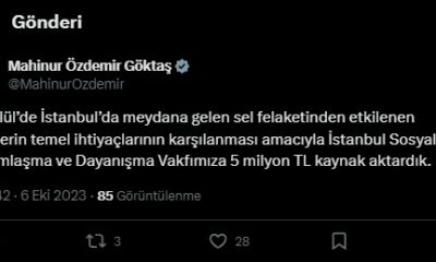AİLE ve Sosyal Hizmetler Bakanı Mahinur Özdemir Göktaş, İstanbul Sosyal Yardımlaşma ve Dayanışma Vakfı’na sel felaketinde etkilenin aileler için 5 milyon TL kaynak aktardıklarını duyurdu. Bakan...