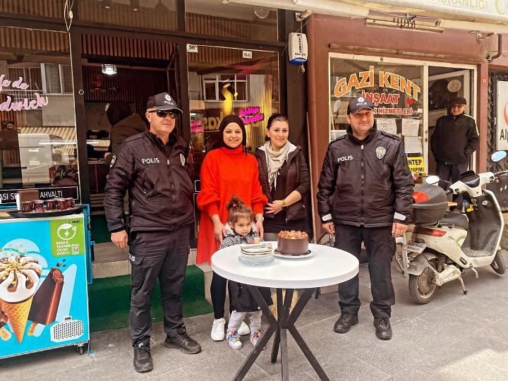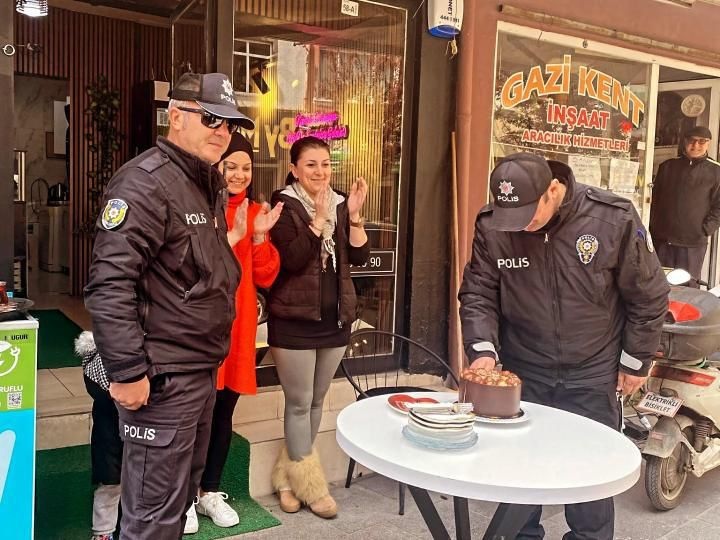 Cumhuriyet Caddesindeki bir işletmede kavga çıktığı ihbarı üzerine, olay yerine polis ekipleri sevk edildi. Ekipler adrese ulaştığında pastalı kutlamayla karşılaştı. Türk Polis Teşkilatı’nın 180’inci kuruluş yıl dönümü nedeniyle, bölge halkının kendileri için hazırladığı sürpriz kutlamayla karşılaşan polisler, mutluluklarını gizleyemedi. Polisler, pastayı alkışlarla kesti. O anlar çevredeki bir kişi tarafından cep telefonu kamerasıyla görüntülendi.
