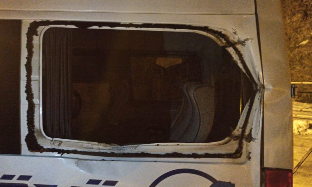 Kaya parçasının isabet ettiği minibüsteki Ceylan, ağır yaralandı