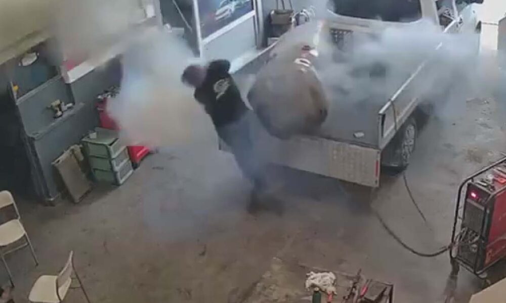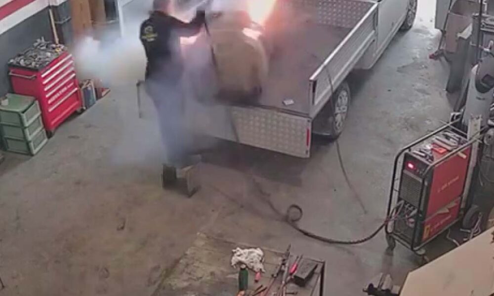 Olay, 9 Nisanda saat 18.30 sıralarında kentteki sanayi sitesinde bulunan atölyede meydana geldi. Kaynak ustası, tamir için kamyonetle getirilen yakıt deposuna kaynak yapmaya başladı. Kaynak sırasında depoda aniden patlama meydana geldi. Patlamanın etkisiyle yere savrulan usta, yüzüne tuttuğu koruyucu maske sayesinde yara almadan kurtuldu. O anlar, iş yerinin güvenlik kamerasına yansıdı. Ortaya çıkan görüntülerde kaynak sırasında patlamanın yaşandığı anlar yer alıyor.