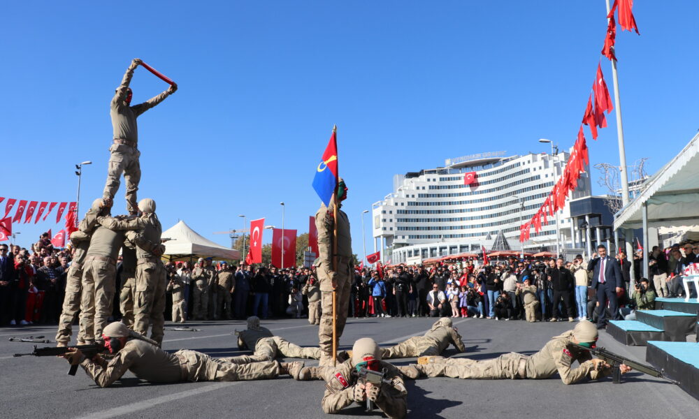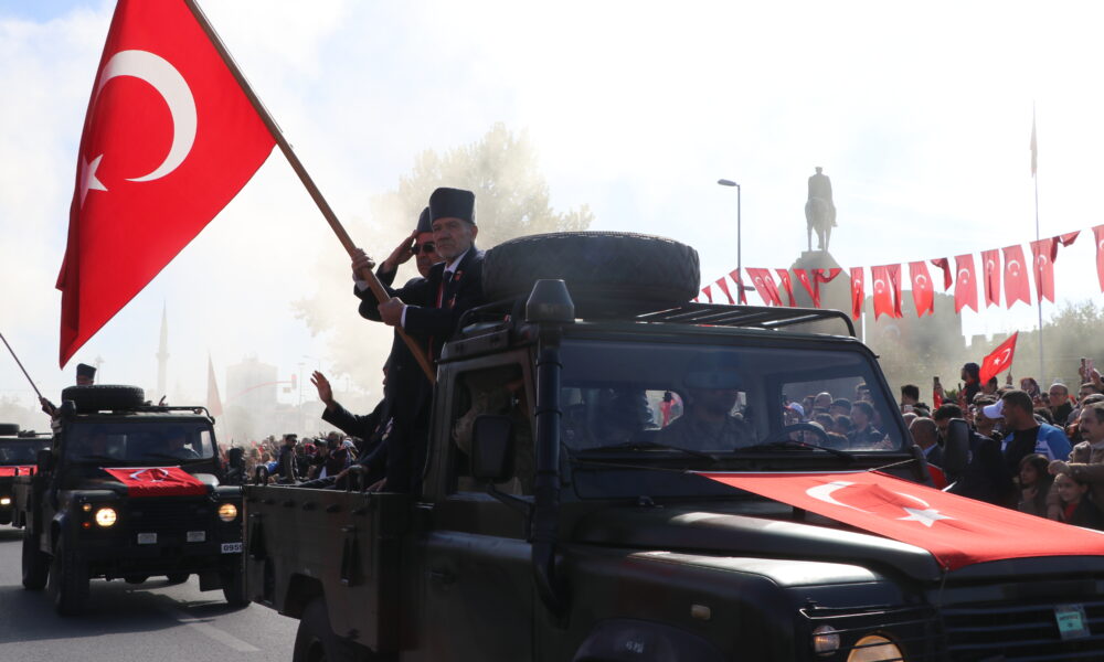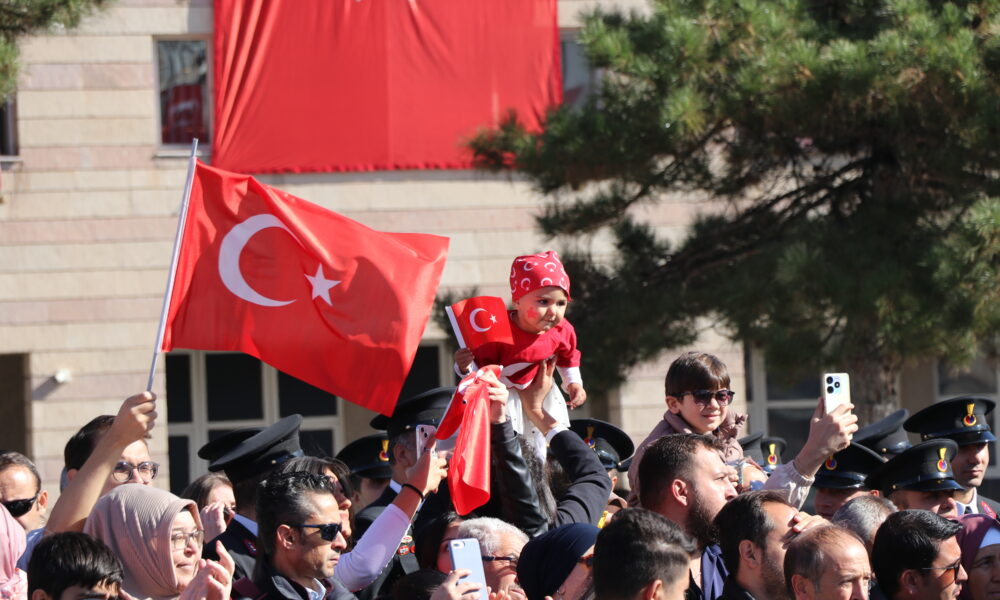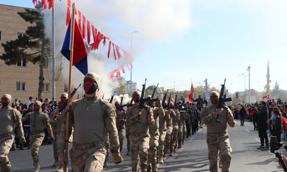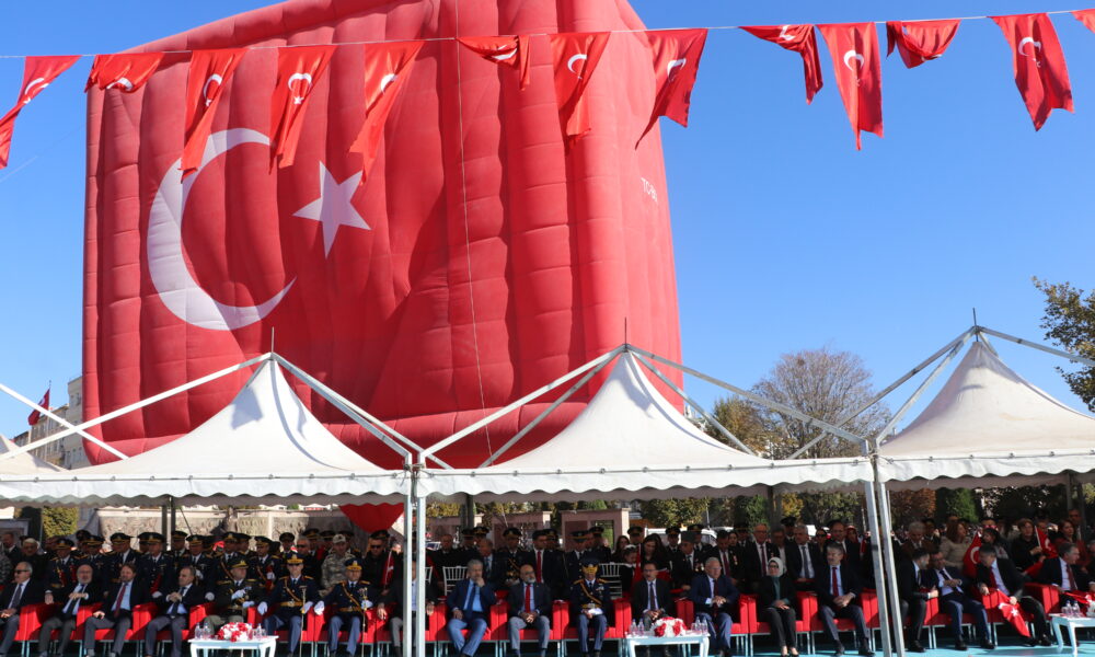 Kayseri’de, Türkiye Cumhuriyeti’nin kuruluşunun 101inci yıl dönümü kutlamaları Cumhuriyet Meydanı’nda yapılan törenle kutlandı. Törene Vali Gökmen Çiçek, Garnizon Komutanı Hava Pilot Tümgeneral Kadircan Kottaş, milletvekilleri, belediye başkanları, siyasi parti temsilcileri ve çok sayıda vatandaş katıldı. Tarih sahnesine daha dün çıkmış bir millet olmadıklarını aktaran Vali Gökmen Çiçek, “Binlerce yıldır varız. Bin yıldır bu coğrafyadayız. Tarih sahnesine ilk çıktığımız andan itibaren milletimiz saldırılarla tuzaklarla karşılaştı. Yani milletimize kurulan tuzaklar, saldırılar yeni değildir. Binlerce yıldır bu millet kendisine karşı kurulan tuzakları bozarak bugünlere gelmiştir. Fakat şunu unutmayın sevgili gençler. Sizler Türk milletinin geleceğisiniz. Sizler yıkılamazsınız. Sizler düşemezsiniz. Sizler ayakta dimdik duracaksınız. Bu vesileyle Cumhuriyetimizin kurucusu Gazi Mustafa Kemal Atatürk başta olmak üzere silah arkadaşlarını ve aziz şehitlerimizi rahmetle, kahraman gazilerimizi minnet ve şükranla anıyor Kayserili hemşehrilerimizin ve tüm milletimizin Cumhuriyet Bayramını kutluyorum” dedi.