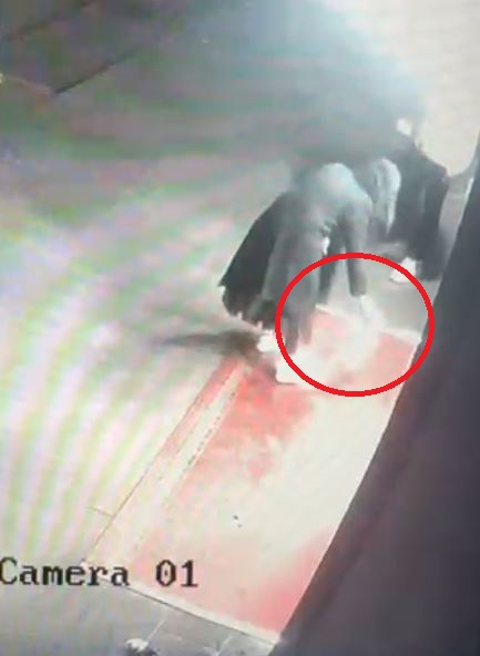 Öte yandan, iki şüphelinin bina güvenlik kameralarına yansıyan görüntülerinde yanlarındaki sıvı ve toz benzeri maddeleri bina girişine sürdükleri ve yere döktükleri görüldü.
