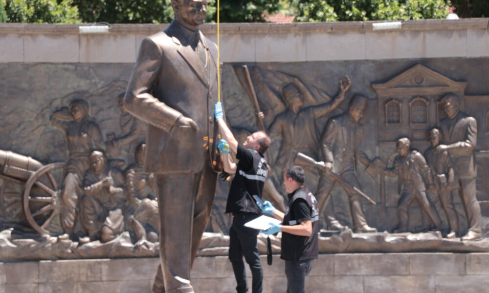 Kayseri’de Atatürk Anıtı’na baltalı saldırı yapan dayı-yeğen adliyede
