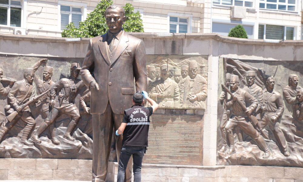Olay, dün saat 11.30 sıralarında Kocasinan ilçesi Cumhuriyet Meydanındaki Atatürk Anıtında meydana geldi. Yaşar K. ile yeğeni Zeynep A. ellerindeki balta ile Atatürk Anıtına vurmaya başladı. Meydanda görev yapan Büyükşehir Belediyesi zabıta ekiplerinin fark etmesiyle 2 şüpheliye müdahale edildi. Ardından olay yerine çok sayıda polis ekibi sevk edildi. Ekiplerin yaptığı çalışma sonucu Atatürk Anıtında 13 balta darbesi tespit edilirken, dayı-yeğen oldukları belirlenen 2 şüpheli gözaltına alındı. Yaşar K. ve yeğeni Zeynep A., emniyetteki işlemlerinin ardından Kayseri Devlet Hastanesi Adli Tabipliğinde sağlık kontrolünden geçirilerek adliyeye sevk edildi. Şüpheliler, adliye önünde gazetecilerin “Pişman mısınız?” sorusuna “Değiliz” cevabını verdi.