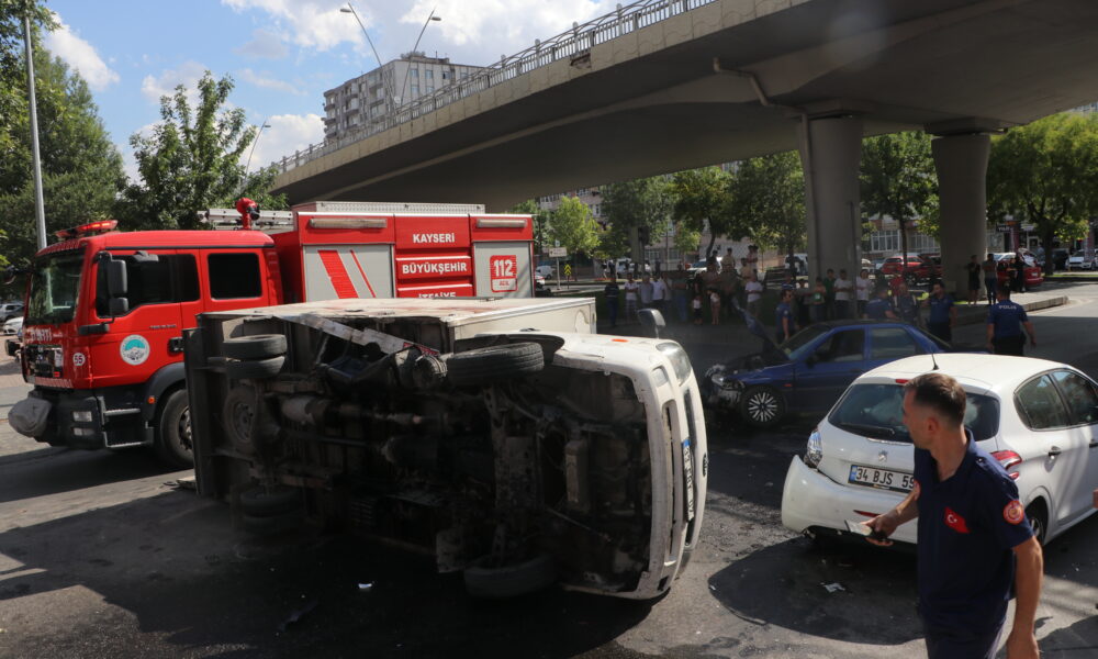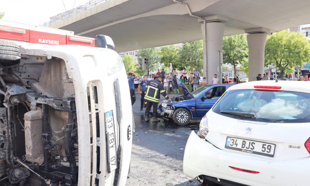 Kaza, saat 16.00 sıralarında Kocasinan ilçesi Mustafa Kemal Paşa Bulvarı ile Nil Caddesi kesişiminde meydana geldi. M.S. idaresindeki 33 EBY 07 plakalı kamyonet ile G.Ş. yönetimindeki 34 BJS 59 plakalı otomobil ve B.Y. yönetimindeki 38 ADK 909 plakalı otomobil çarpıştı. Çarpışmanın etkisiyle kamyonetin devrildiği kazada 3 kişi yaralandı. Çevredekilerin ihbarıyla kaza yerine polis, sağlık ve itfaiye ekipleri sevk edildi. Polis, yol üzerinde güvenlik önlemi alırken, kamyonette sıkışan sürücü itfaiye ekiplerinin çalışması sonucu çıkarıldı. Yaralılar, ilk müdahalelerinin ardından çeşitli hastanelere kaldırıldı. Kaza ile ilgili soruşturma başlatıldı.