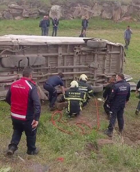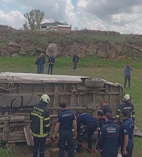 Kayseri’de öğrencileri taşıyan minibüs devrildi; 16 yaralı