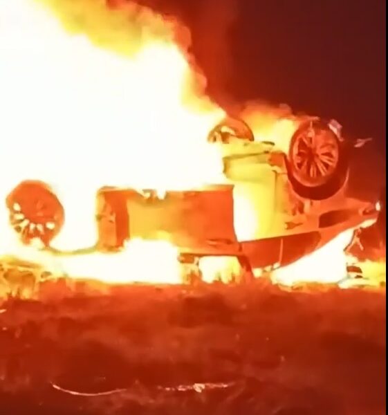 Kayseri’de şarambole devrilen otomobil alev aldı: 1 yaralı