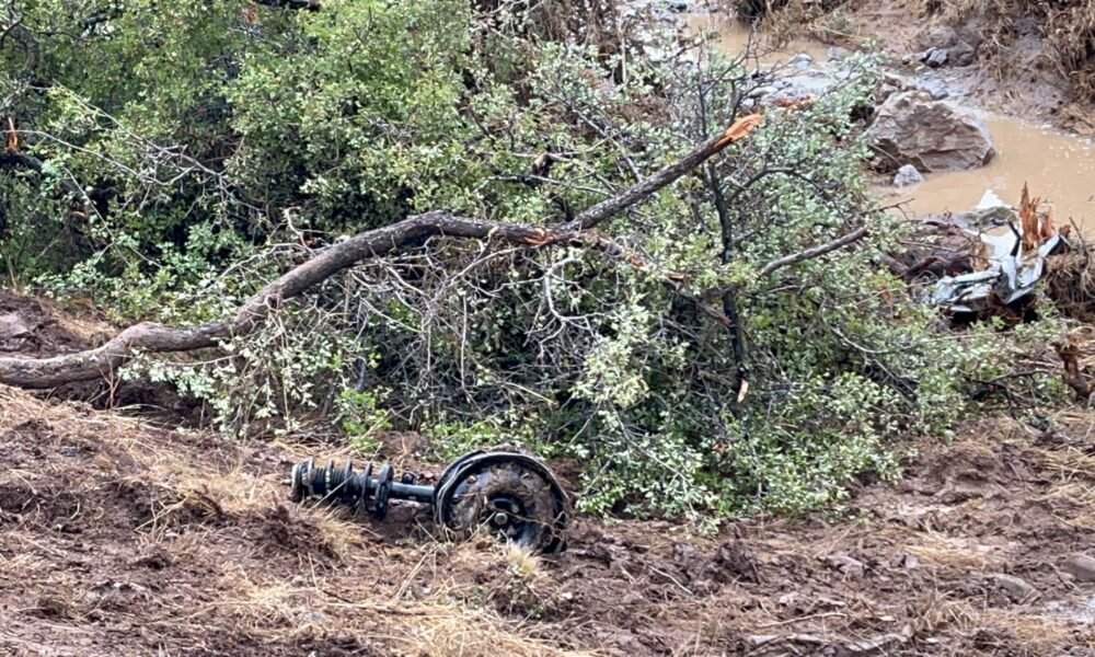 Otomobil dere yatağından çıkarılırken, Saraçı arama çalışmaları aralıksız sürüyor. İş makineleri ile ağaç ve kaya parçalarının arasında arama yapılırken, ekiplere Saraçın arkadaşları da destek veriyor. Muhittin Saraçın otomobiline ait lastik, amortisör ve bazı parçalar da dere yatağında bulundu.