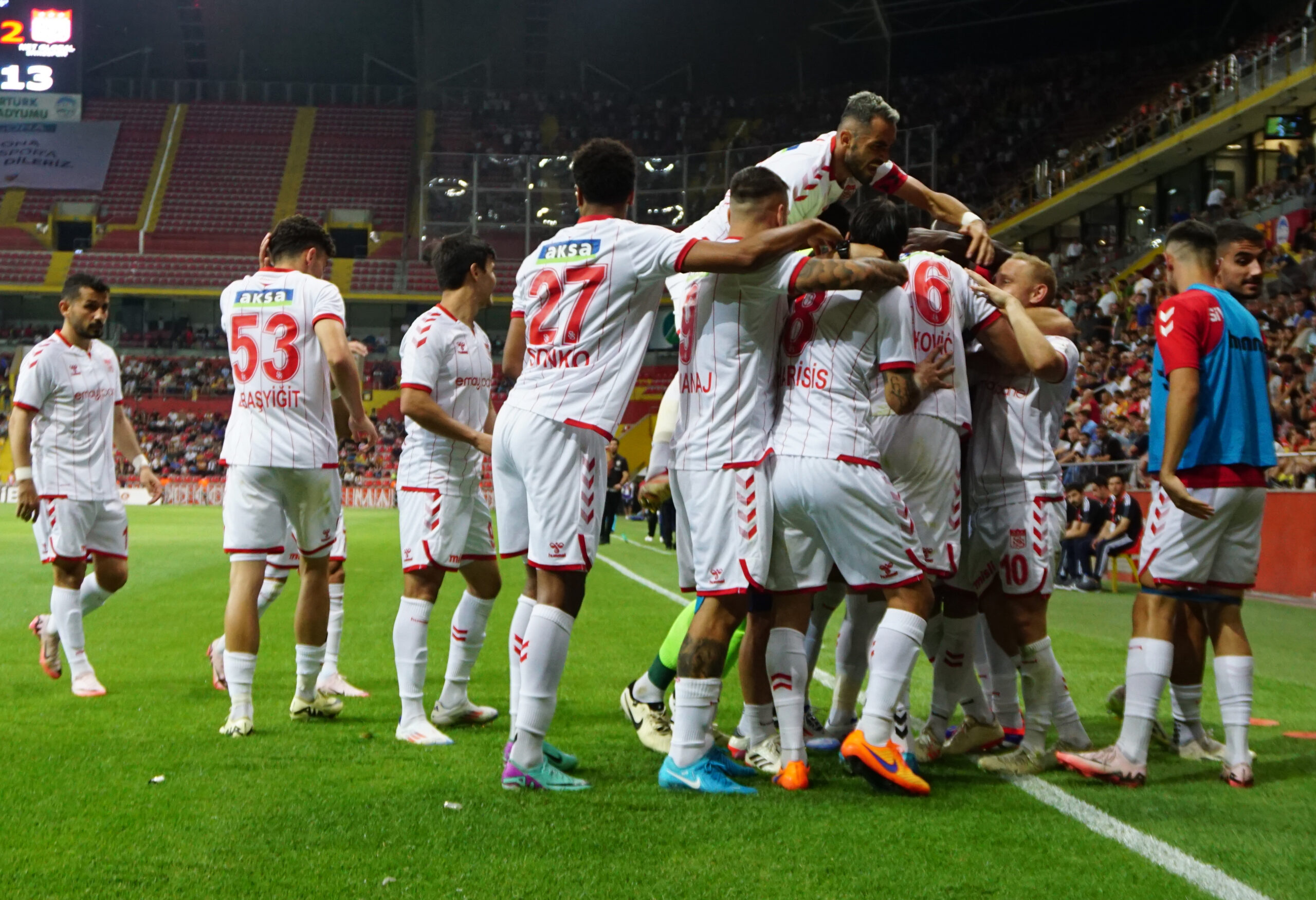 Sivasspor, sezonun 2'nci haftasında konuk olduğu Kayserispor karşısında 1-0 geriden gelerek 2-1 öne geçti. Fotoğraf: İlyas Kaplan/Kayseri(DHA)