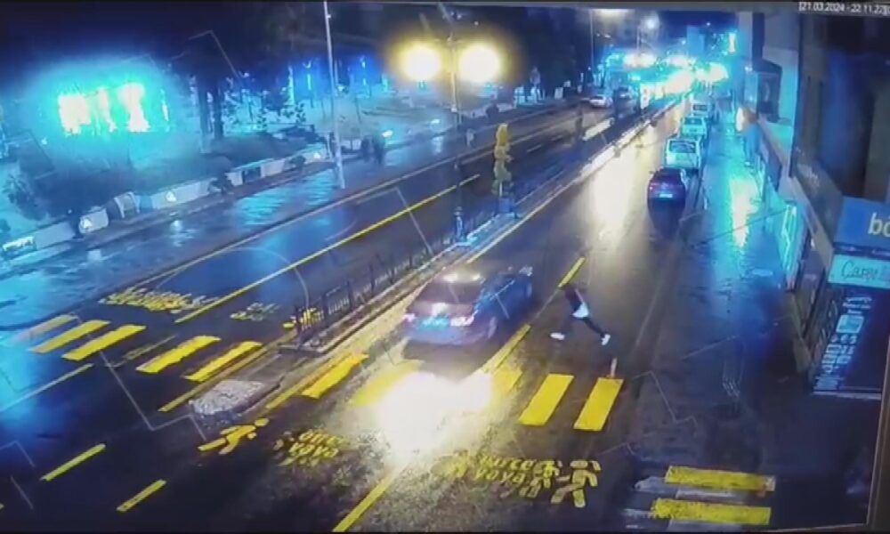 Kaza görünümü vermek için otomobile atlayıp, yere düştü; o anlar kamerada