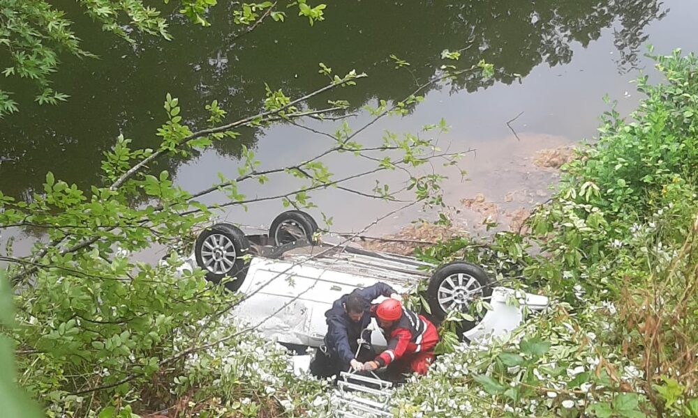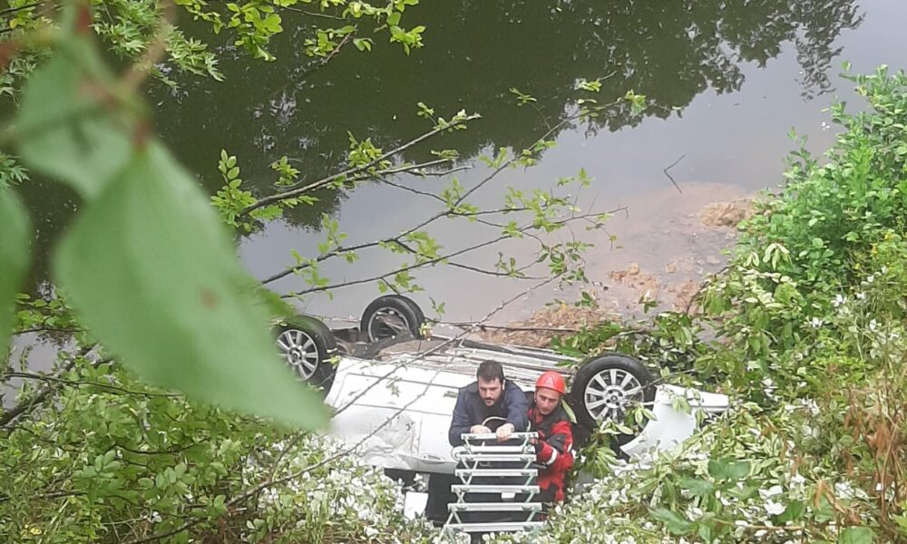 Kaza sonrası derede mahsur kalan sürücüyü itfaiye kurtardı