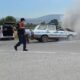 Kaza sonrası otomobil yanmaya başladı, jandarma söndürdü