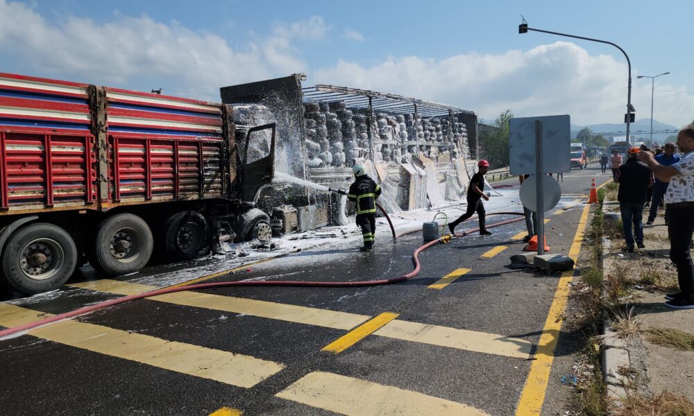 Kaza, saat 10.30 sıralarında D-100 kara yolunun Kaynaşlı mevkisinde meydana geldi. İstanbul yönüne giden Şevket Sarı idaresindeki 34 FAU 178 plakalı boş LPG deposu yüklü TIR, Recep Ali Han yönetimindeki 43 APP 820 plakalı TIR’a arkadan çarparak yanmaya başladı. Şoförler kazadan yara almadan kurtulurken, ihbar üzerine bölgeye itfaiye ekipleri sevk edildi. İtfaiye ekiplerinin müdahalesi ile alevler söndürülürken, TIR kullanılamaz hale geldi. Diğer TIR’ın dorsesinde ise hasar oluştu.