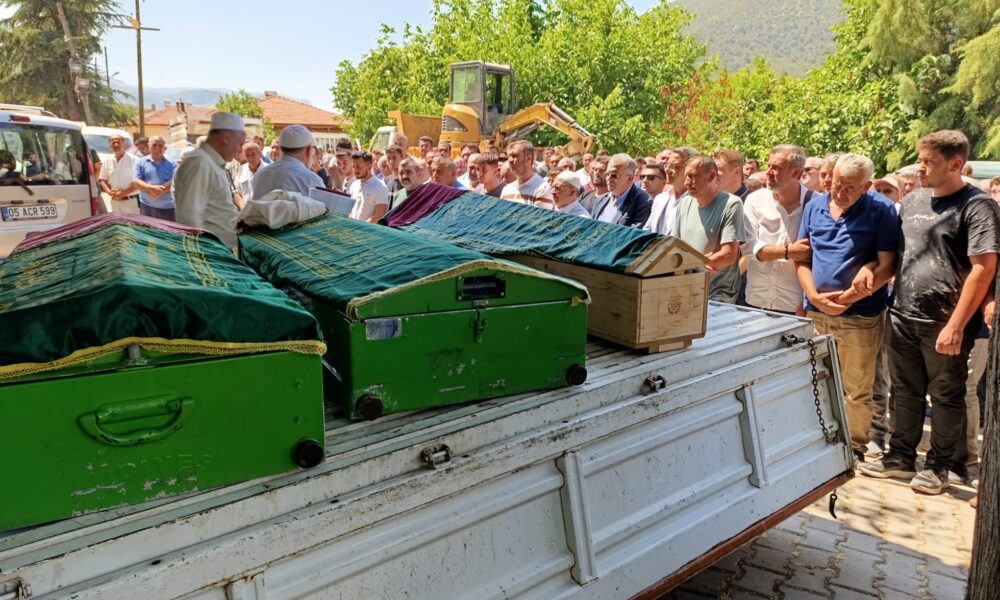 Kazada ölen anne ile 10 yıl önce böbreğini verdiği oğlu ve kızı toprağa verildi