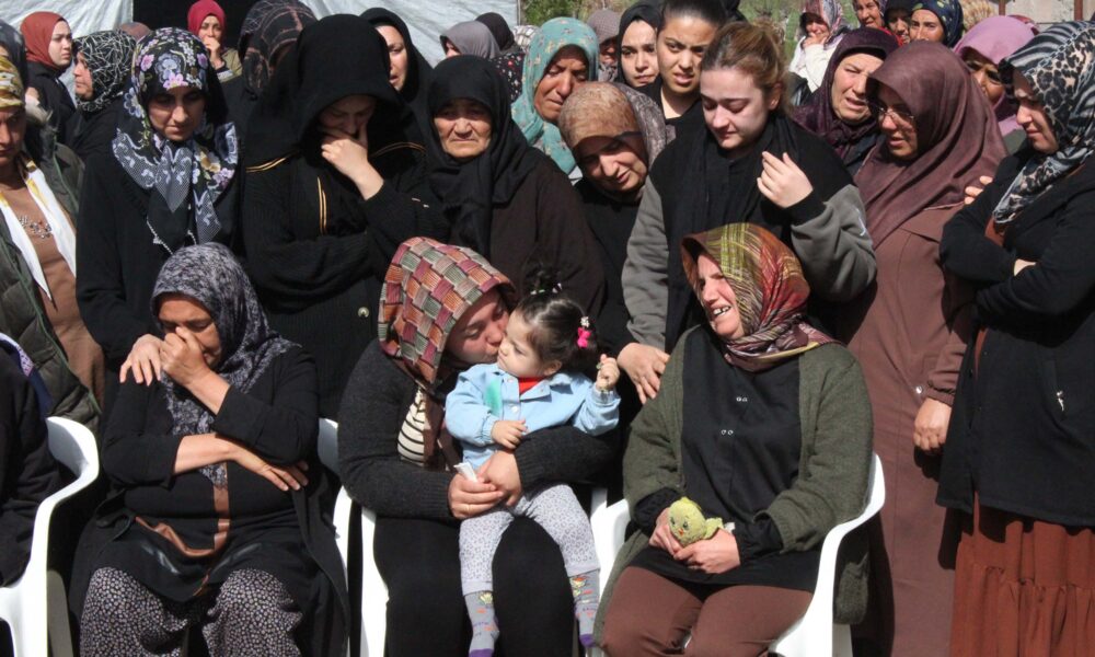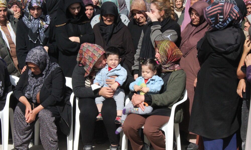 • İkiz çocuklarıyla eşinin tabutunu karşılayan Melike Dal (Kucağında çocuk olan) gözyaşlarına hakim olmadı. Fotoğraf: Erkan ALTUNTAŞ/Aksaray,(DHA)