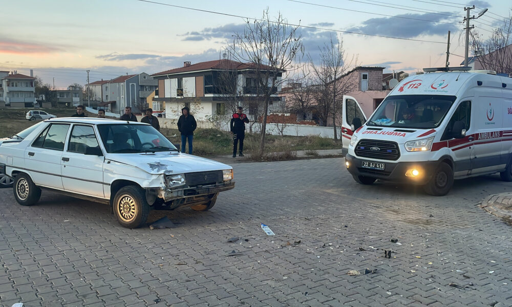 Kaza, saat 17.30 sıralarında Cumhuriyet Mahallesi, Nazmi Başar Caddesi’nde meydana geldi. Cadde üzerinde seyreden ehliyetsiz ve kasksız sürücü A.E.Ö. yönetimindeki 17 ADU 338 plakalı motosiklet, Sancar Sokak’tan caddeye çıkan G.A.T. (63) yönetimindeki 45 U 1441 plakalı otomobile çarptı. Yoldan çıkan motosiklet bir apartmanın bahçesine devrildi. Kazada, motosiklet sürücüsü A.E.Ö. ve arkasındaki kız arkadaşı N.S.D., yaralandı. İhbar üzerine kaza yerine polis ve sağlık ekipleri sevk edildi. A.E.Ö., sağlık ekiplerinin kız arkadaşına müdahalesi sırasında polis memuruna sarılarak, gözyaşı döktü. Polis, yaralı sürücüyü sakinleştirmeye çalıştı. Yaralılar, sağlık ekiplerince Keşan Devlet Hastanesi’ne kaldırılarak, tedaviye alındı. Polis, otomobil sürücüsü G.A.T.’yi ifadesini almak üzere emniyete götürdü. Kazayla ilgili inceleme sürüyor.