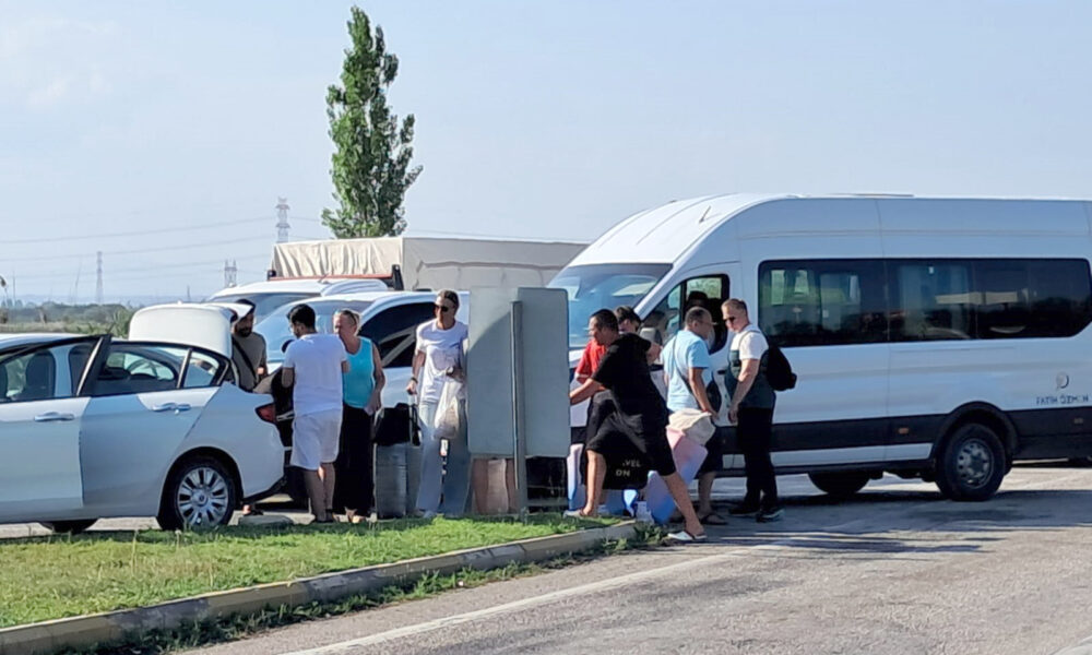 Kazaya karışan minibüsteki turistler, havalimanına gitmek için çevredekilerden yardım istedi
