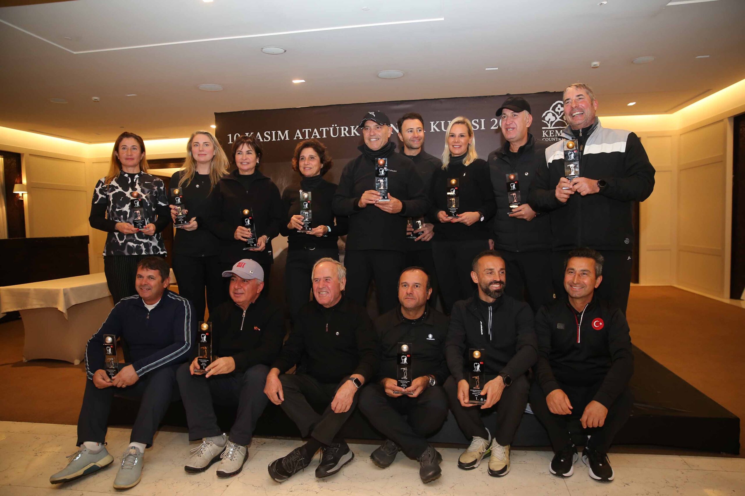 10 Kasım 2024 Pazar günü Kemer Golf Kulübünde düzenlenen “Atatürk’ü Anma Kupası” golf turnuvası saat 09:05’te tüm katılımcılar tarafından gerçekleştirilen saygı duruşu ve İstiklal Marşının okunmasıyla başladı. Bu özel turnuva toplam 8 farklı kategoride 56 golf oyuncusunun katılımı ile gerçekleşti. Saat 15:30’da düzenlenen ödül töreninde Atatürk’ün en sevdiği yemekler ve müzikler eşliğinde dereceye giren sporculara ödülleri takdim edildi. Ödülleri Kemer Golf Kulübü Kaptanı Erdem Kıramer ve Kemer Golf Kulübü Direktörü Erol Şimşek taktim etti.
