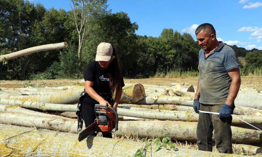 Kereste şirketi sahibi Yonca, testere ile ağaç kesiyor, nakliye yapıyor