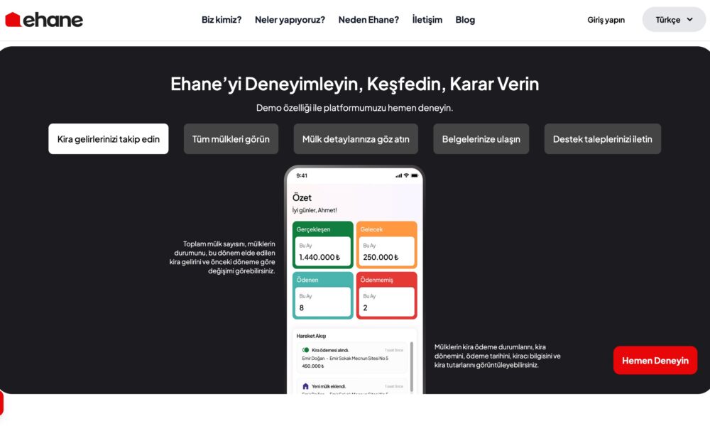 Demirelin açıklamasına göre Ehane, kira tahsilatı, gider takibi, bakım onarım işleri ve hukuki süreçler dahil olmak üzere, ev sahiplerinin yükünü hafifleten birçok hizmeti tek platformda sunuyor. Sözleşme hazırlama, bildirim gönderme, tahliye işlemleri ve evrak yönetimi gibi zaman alan adımlar da platformun uzman ekibi ve çözüm ortakları tarafından yürütülüyor.