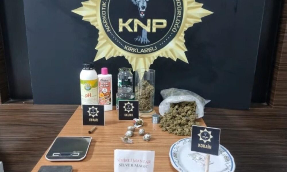 Kırklareli Cumhuriyet Başsavcılığı koordinesinde İl Emniyet Müdürlüğü Narkotik Suçlarla Mücadele Şube Müdürlüğü ekipleri uyuşturucu imal eden, satan, bulunduran ve kullanan şüphelilere yönelik operasyon düzenledi. Adreslere köpek kullanılarak yapılan aramalarda, 1 kilo 58 gram skunk, 12,76 gram sihirli mantar, 5 hassas terazi, 3 uyuşturucu madde öğütücüsü, 0,19 gram kokain, 20 sentetik hap, 3,77 gram metamfetamin, 0,28 gram sentetik kannabinoid, 1 pompalı tüfek, 15 uyuşturucu kullanma aparatı ve suçtan elde edildiği değerlendirilen 35 bin TL ele geçirildi. 28 şüpheli de gözaltına alındı.