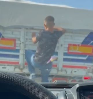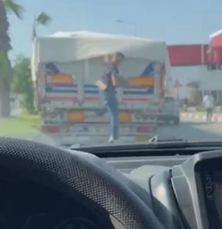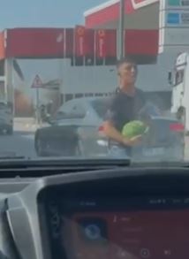 Kırmızı ışıkta duran kamyondan karpuz çaldı; o anlar kamerada