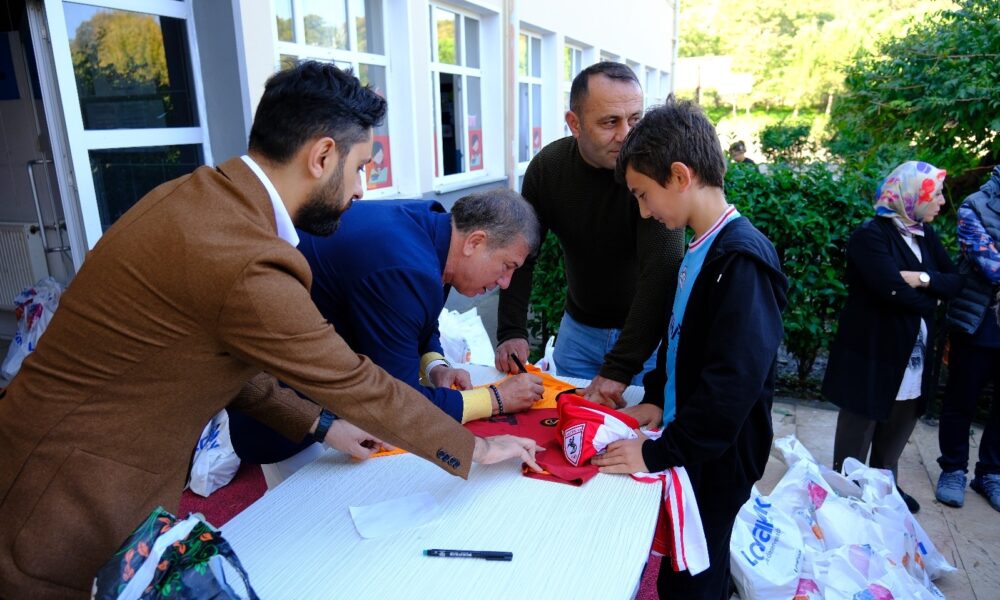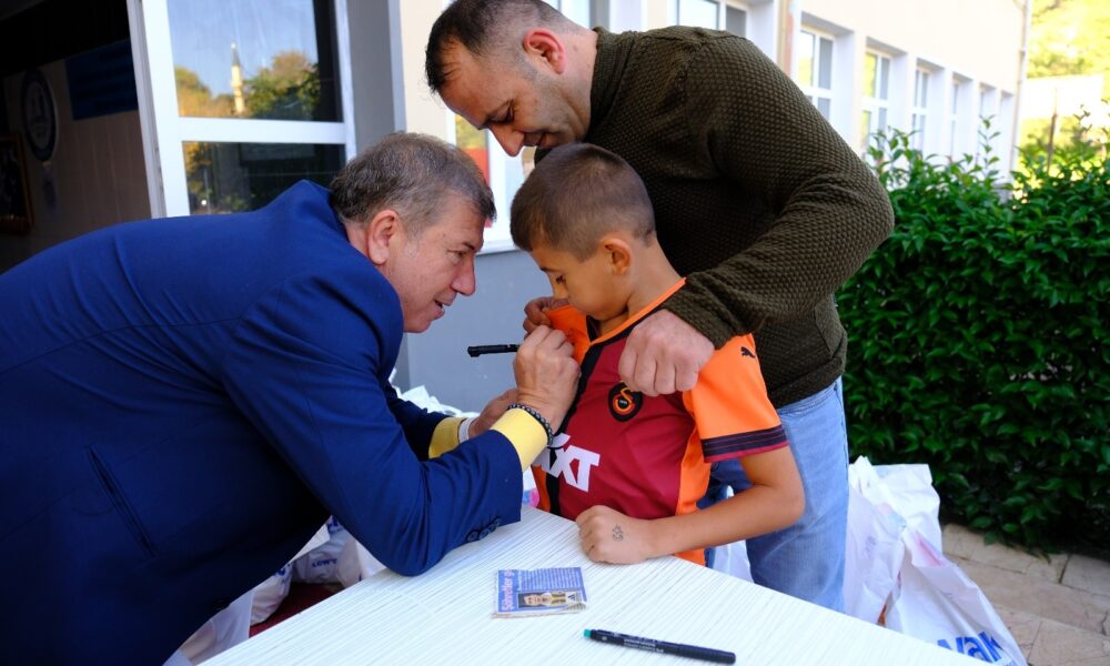 Kırsal mahalledeki okulları ziyaret eden Tanju Çolak’a öğrencilerden yoğun ilgi