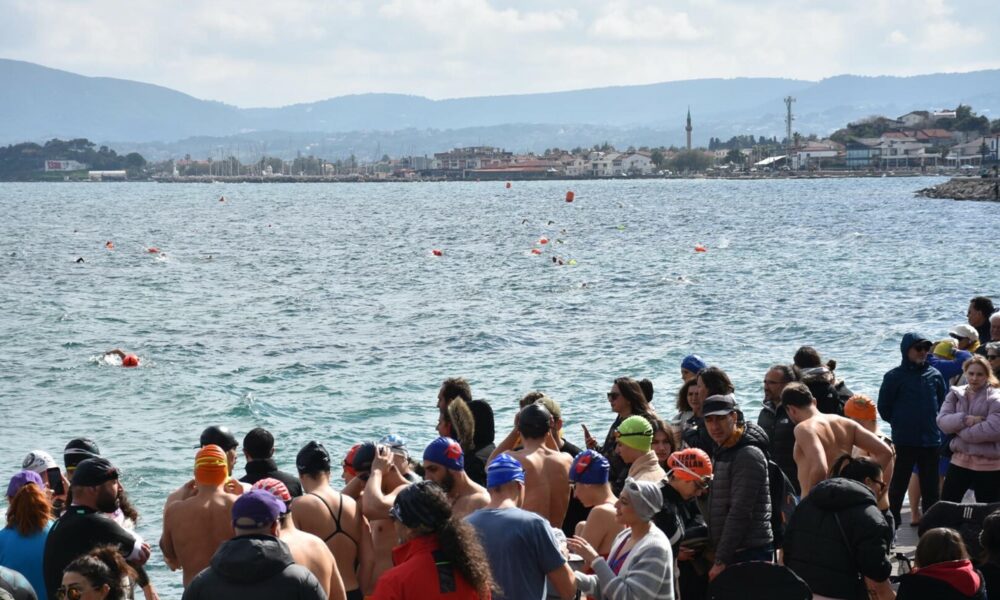 • İzmir'in Urla ilçesinde 'Hava soğuk, su soğuk, yürekler sıcak' sloganıyla kış mevsiminde 1 ila 2 kilometrelik parkurda yüzme etkinliği gerçekleştirdi.Fotoğraf:İzmir,(DHA)