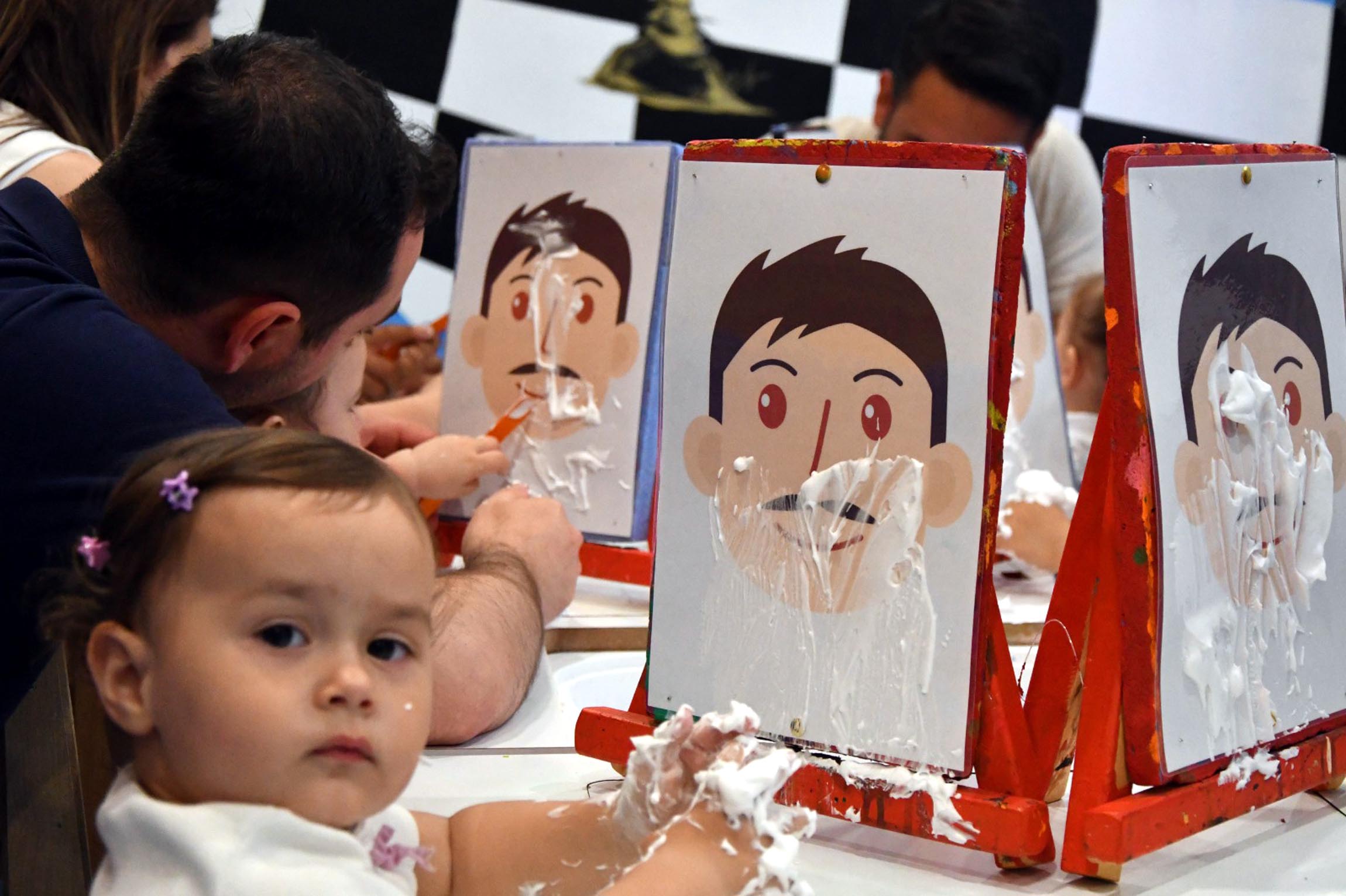 • Tekirdağ'ın Çorlu ilçesinde çocuk kitabevinde 'babalar günü' dolayısıyla düzenlenen etkinlikte çocuklar, babalarıyla dans edip, oyunlar oynadı. Berk Kambur (eşi ve çocuğuyla)Fotoğraf: Mehmet YİRUN/Tekirdağ, (DHA)