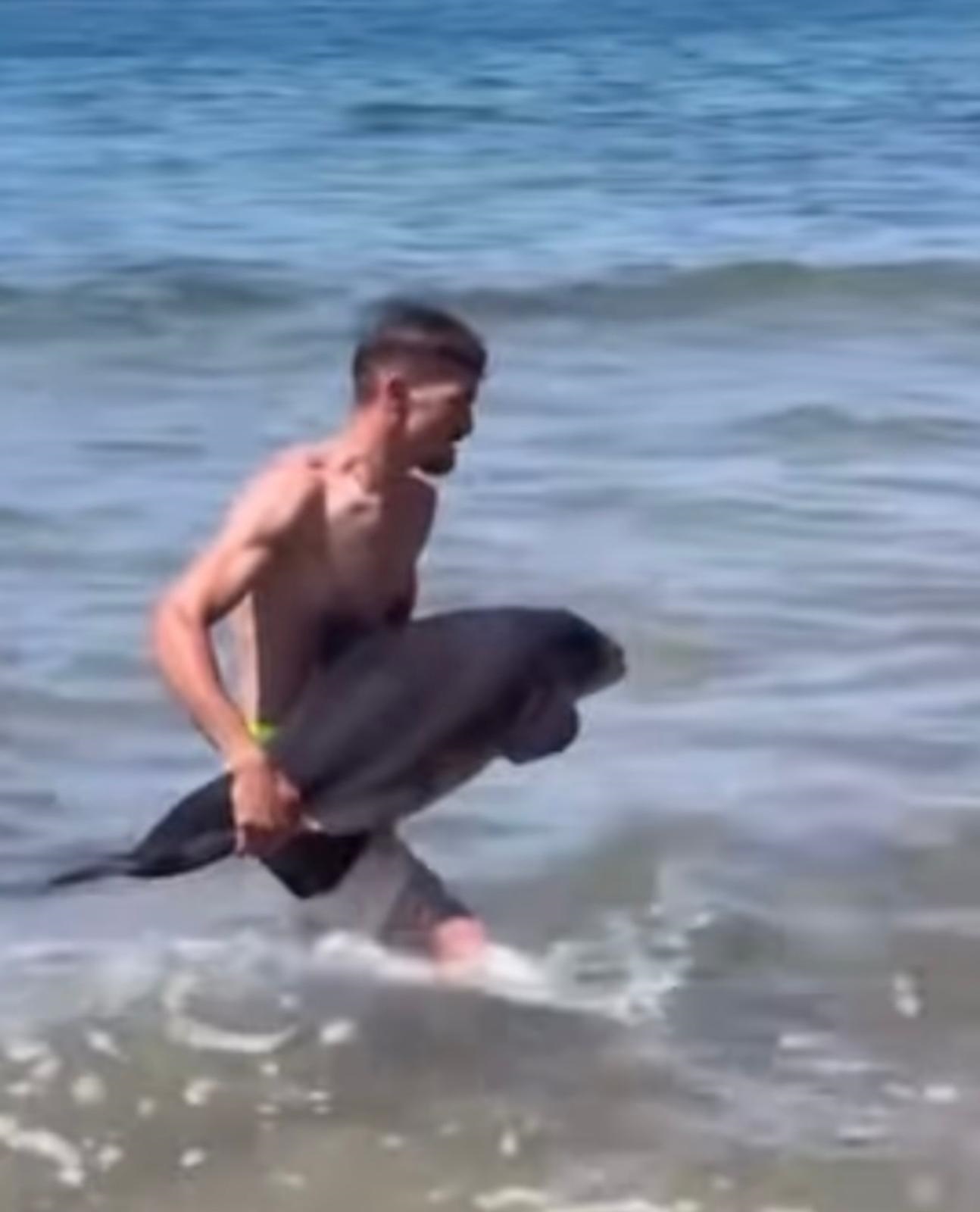 Dün akşam saatlerinde Amasra Bozköy plajında olan bazı kişiler, yavru bir yunusun kıyıya vurduğunu gördü. Çevredekilerden biri yunusu kucağına alıp, karaya çıkardı. Yapılan incelemede yunusun kuyruk kısmında küçük bir yara olduğu belirlendi ve yeniden denize bırakıldı. O anlar cep telefonuyla görüntülendi.