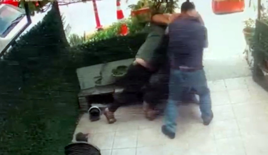 • Tekirdağ’ın Çerkezköy ilçesinde E.G. (Fotoğrafta üstte), hatalı park ettiği gerekçesiyle kız arkadaşını uyaran esnaf Ü.A.'ya (Fotoğrafta altta) saldırdı. Fotoğraf: Tekirdağ, (DHA)