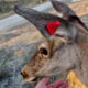Kızıl geyiklerden biri kavun tarlasında, diğeri köyde görüntülendi