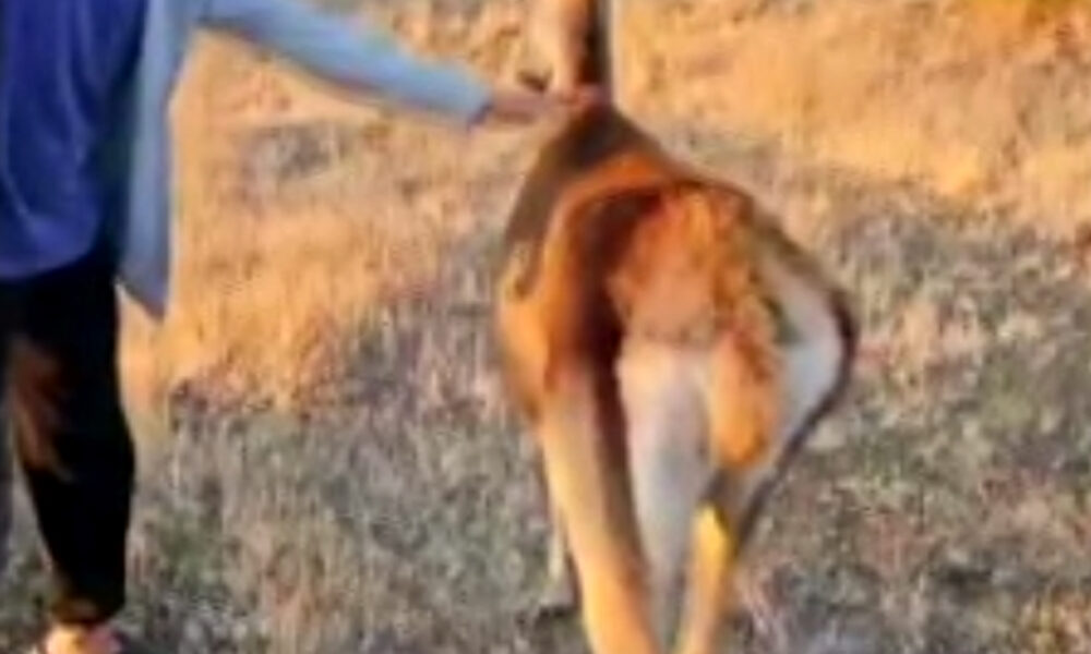 Geyiği görüntüleyen vatandaş, “Kızıl geyik yine yanımızda, maşallah. Biraz önce yavrusu vardı. Kaçtı. Şu anda yine Yaşar dayının sebzeliğinin içinde yayılıyor. Güzel misin sen, sevdirecek ceylanım, can kuşum benim, bir tanem. Bunların nesli tükenmek üzereymiş, sevmeme izin veriyor. Bunlar daha önce Doğa Koruma ve Milli Parklar tarafından Eşeler Dağına bırakıldı. İleride bunlar bizim ne sebzeleri kor, ne ekinleri kor, hayırlısı. Evcil, kaçmıyor” diyerek sevdi.