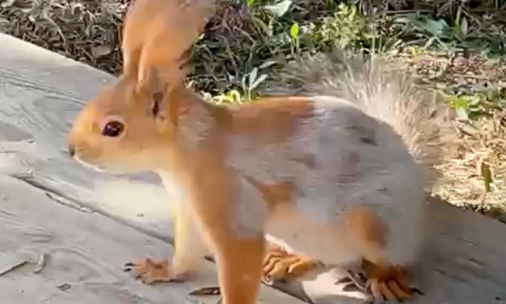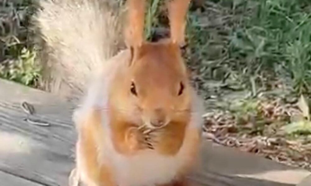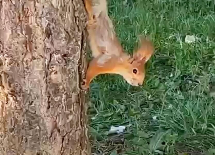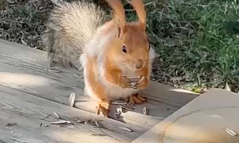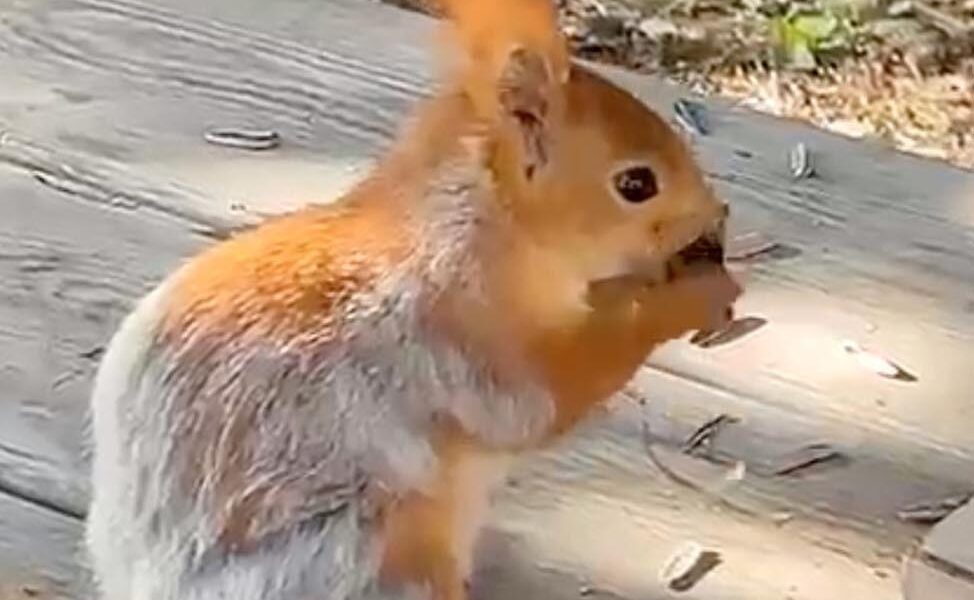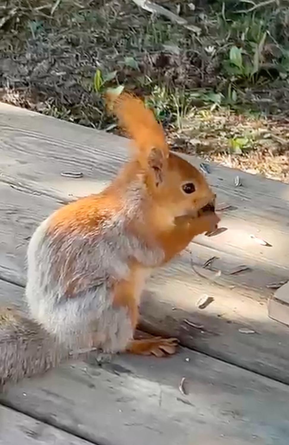 Kızıl sincap, piknikçilerin yanına gelip çekirdek yedi