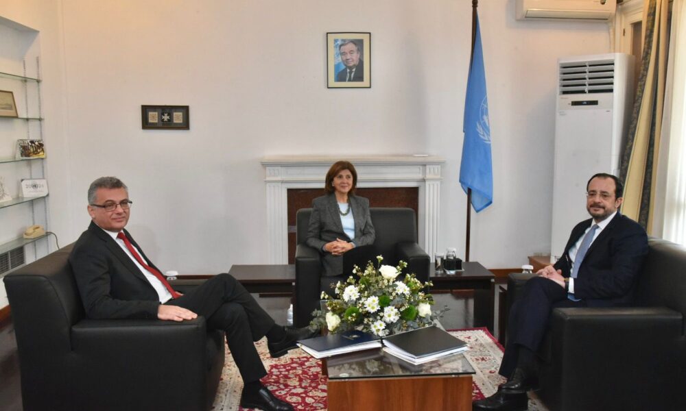 Kuzey Kıbrıs Türk Cumhuriyeti (KKTC) Cumhurbaşkanlığı’ndan yapılan açıklamada, Tufan Erhürman ile GKRY lideri Nikos Hristodulidis’in, Birleşmiş Milletler (BM) Genel Sekreteri Antonio Guterresin Kıbrıs Kişisel Temsilcisi Maria Angela Holguin ile BM Genel Sekreteri’nin Kıbrıs Özel Temsilcisi ve BM Barış Gücü Misyon Şefi Khassim Diagne’nin ev sahipliğinde ara bölgede bir araya geldiği bildirildi.