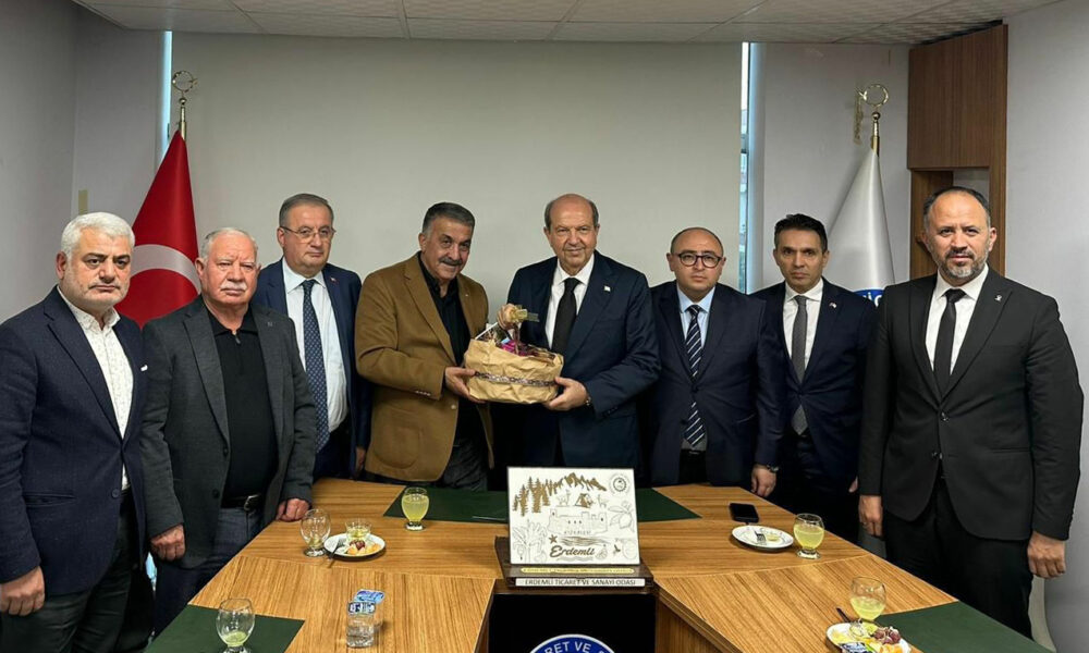 KKTCnin 5inci Cumhurbaşkanı Ersin Tatarın, ETSO ziyaretinde Türkiye ile KKTC arasındaki ekonomik ve ticari ilişkiler ele alınırken, iş dünyaları arasında geliştirilebilecek iş birliği imkânları değerlendirildi. Ersin Tatar, Türkiye’nin KKTC’ye verdiği desteğin önemine vurgu yaparak, yerel odalar ve iş insanlarıyla kurulacak güçlü bağların iki ülke arasındaki ticareti daha da ileri taşıyacağını ifade etti. ETSO Yönetim Kurulu Başkanı Mustafa Karagöz ise Erdemli iş dünyasının yapısı, bölgenin tarım, ticaret ve sanayi potansiyeli hakkında bilgi vererek, KKTC ile karşılıklı ticaret ve yatırım ilişkilerinin geliştirilmesine hazır olduklarını belirtti.