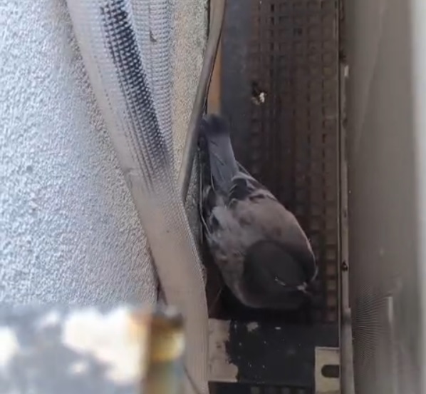 Klima boşluğunda mahsur kalan güvercini itfaiye kurtardı