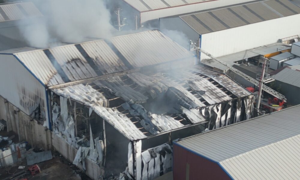 • Kocaeli'nin Gebze ilçesinde bulunan boya imalathanesinde çıkan yangın itfaiye ekiplerinin çalışmaları sonucu yaklaşık 2 saatte kontrol altına alındı. Yanan ve hasar alan imalathane havadan görüntülendi. Fotoğraf: Gebze(Kocaeli), (DHA)