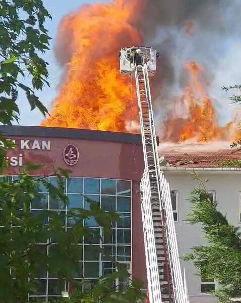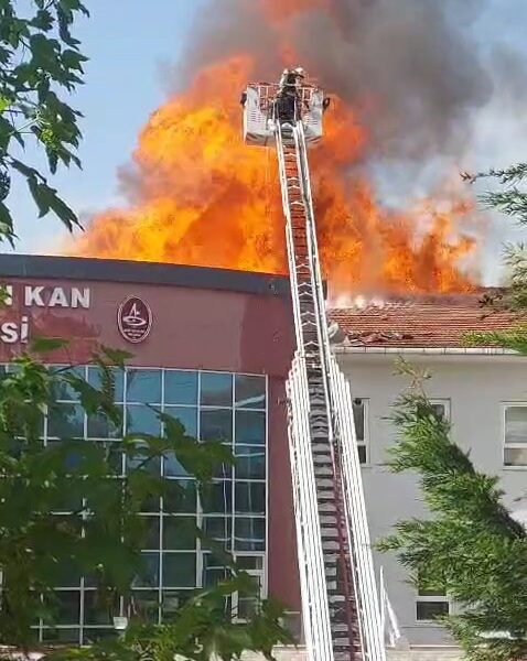 Kocaeli’de, tadilat sırasında okulun çatısında çıkan yangın söndürüldü
