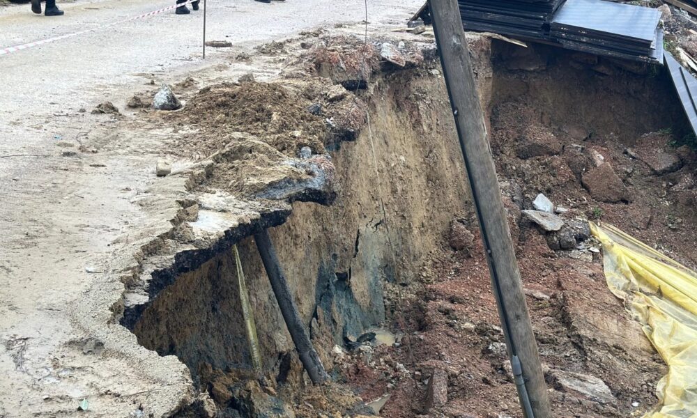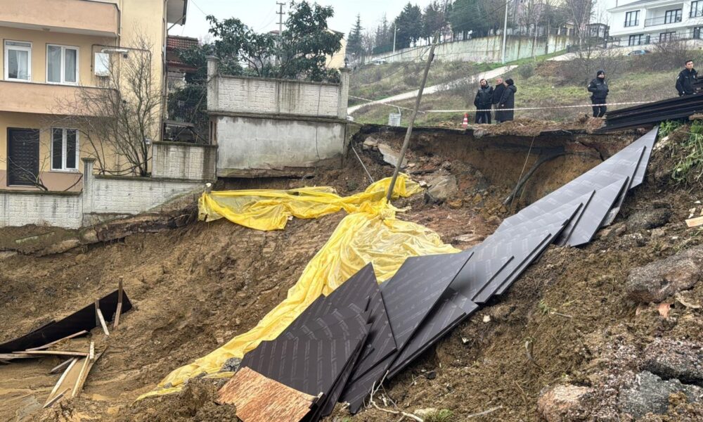 Kocaeli’de toprak kayması; binanın bahçe duvarı ve sokaktaki yolun bir bölümü çöktü