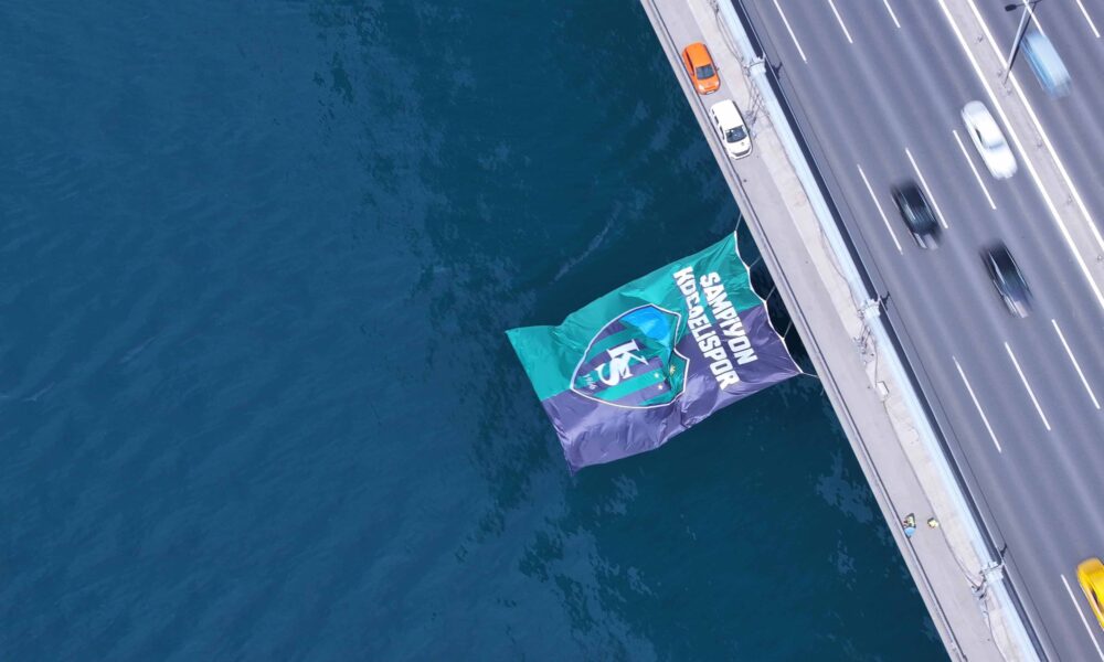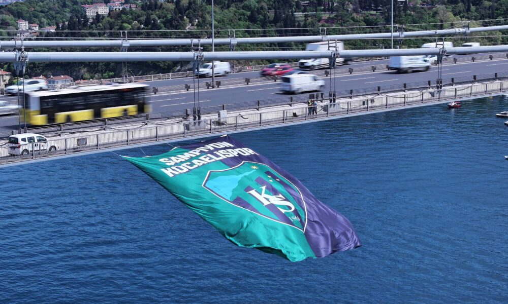 1’inci Lig’de 2024-2025 sezonunu birinci sırada tamamlayarak Süper Lig’e yükselen yeşil-siyahlı takımın dev bayrağı, Kocaeli Büyükşehir Belediyesi’nin gerekli izinleri almasının ardından bugün Fatih Sultan Mehmet Köprüsü’ne asıldı. Dev bayrağın görüntüsünü sosyal medya hesabından paylaşan Kocaeli Büyükşehir Belediye Başkanı Tahir Büyükakın, “Biz İstanbul’la anlaşırız” ifadelerine yer verdi.