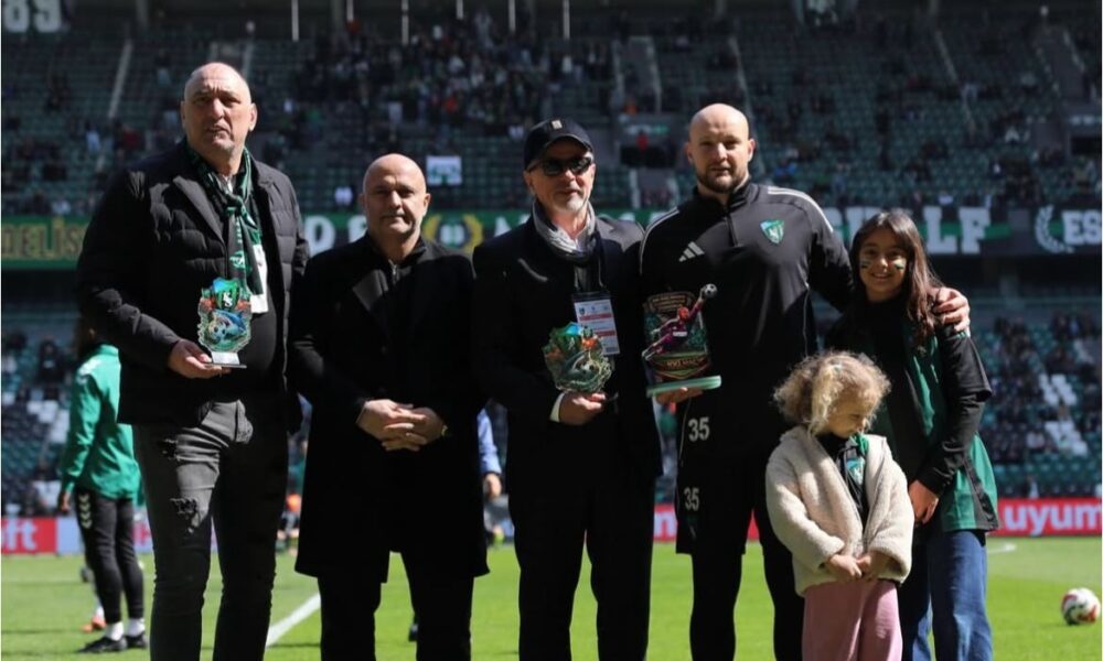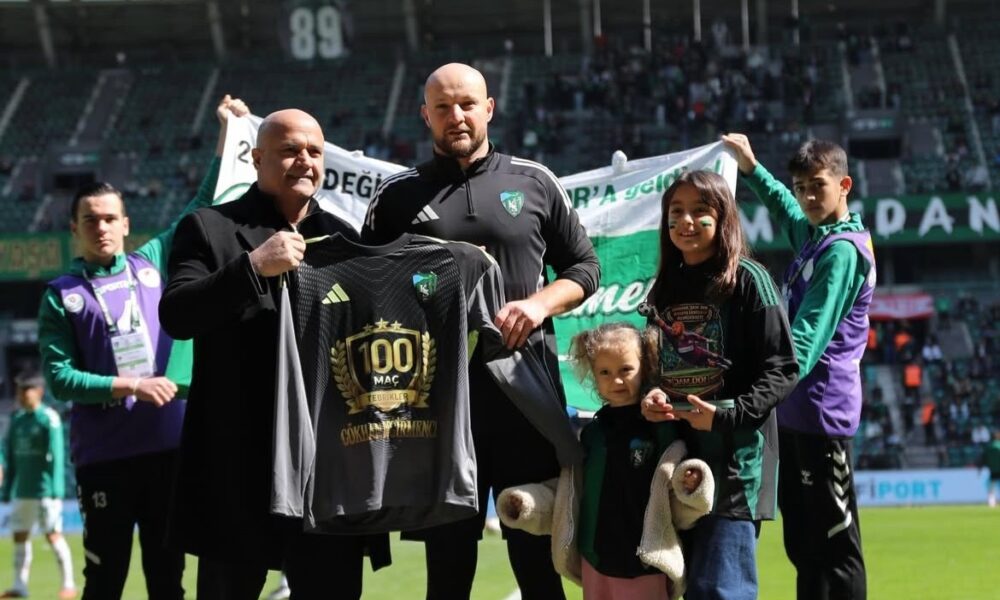• Kocaelispor Başkanı Recep Durul, 100’üncü maçına çıkan takım kaptanı deneyimli file bekçisi Gökhan Değirmenci’ye plaket ve bu maça özel hazırlanış forma taktim etti. Fotoğraf: (DHA)