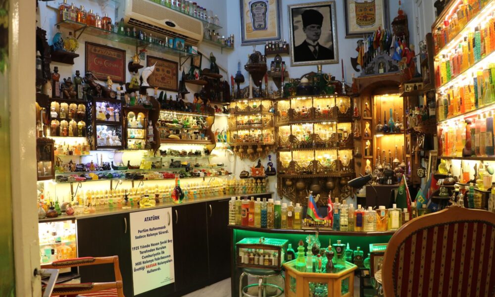 1925te Hasan Şevki Bey tarafından Hassan Milli Kolonya Fabrikası kurulduğunu hatırlatan Ünal Çınar, “Atatürke hediye olarak buradan kutulu kolonya gönderilmiş. Dünyada sadece 3 tane bu kolonya kutusundan var, biri de bende” dedi.