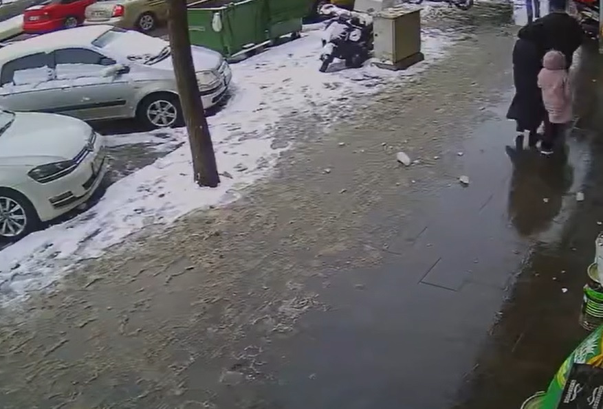 Kombi bacasındaki buz sarkıtı 3 kişinin önüne düştü