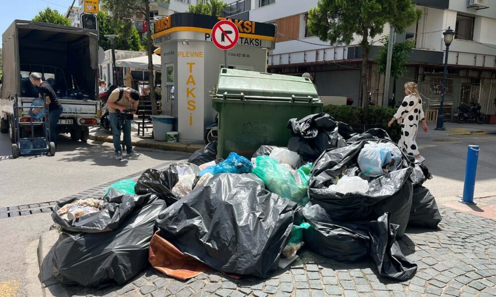 Konak’ta grev kararı sonrası sokaklarda çöp yığınları oluştu