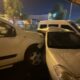 Kontrolden çıkan otomobil, park halindeki 4 araca çarptı; kazanı kamerada