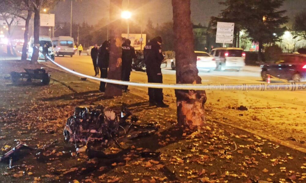 Kontrolden çıkan otomobil, refüjdeki ağaca çarpıp takla attı: 2 yaralı