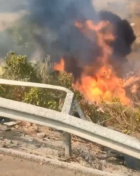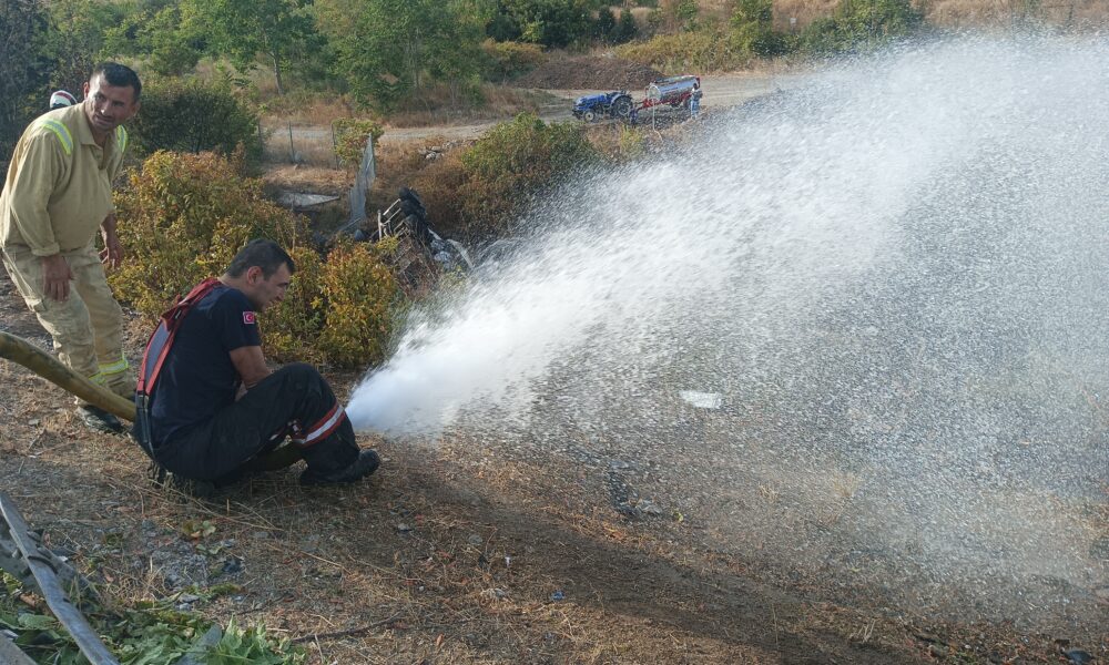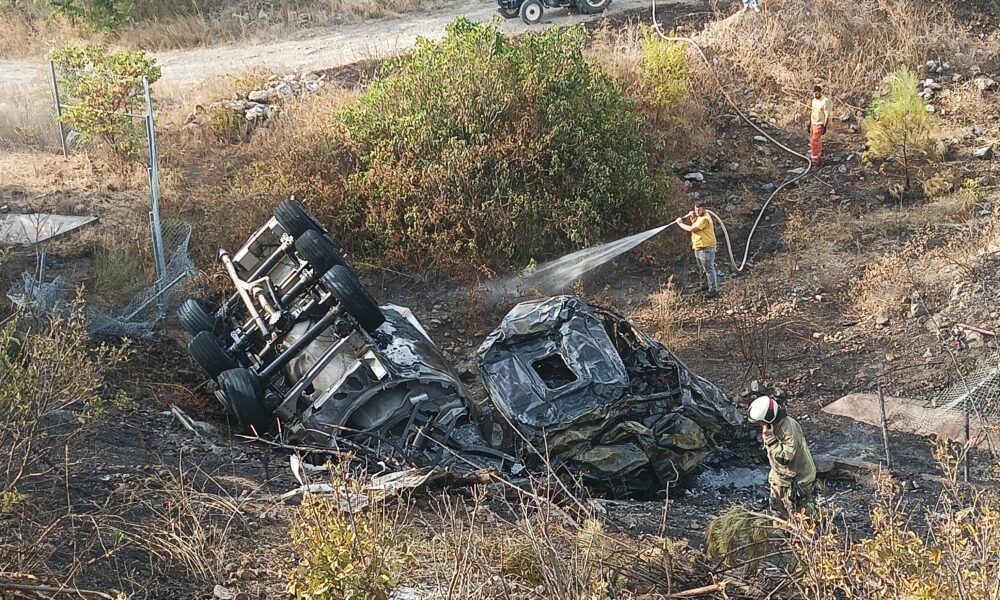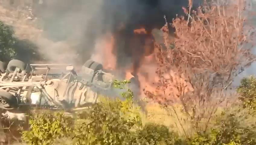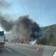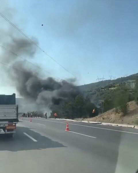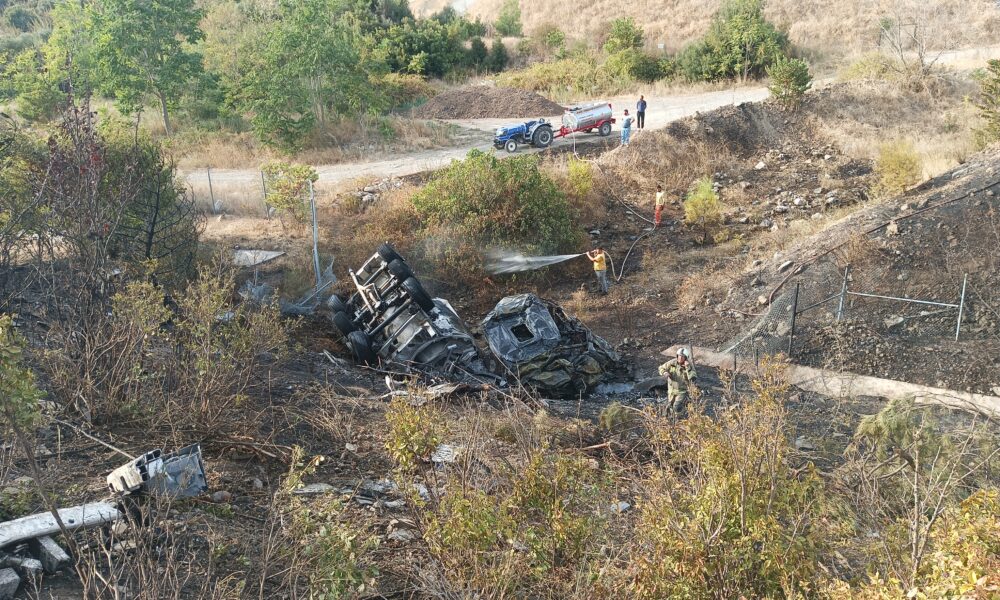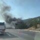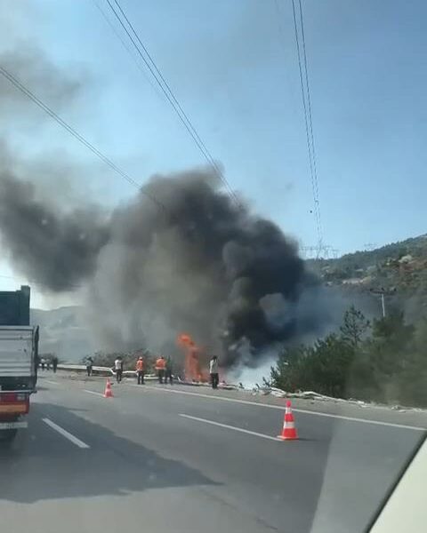 Kontrolden çıkan TIR şarampole yuvarlanıp alev aldı, sürücü yaralı kurtuldu